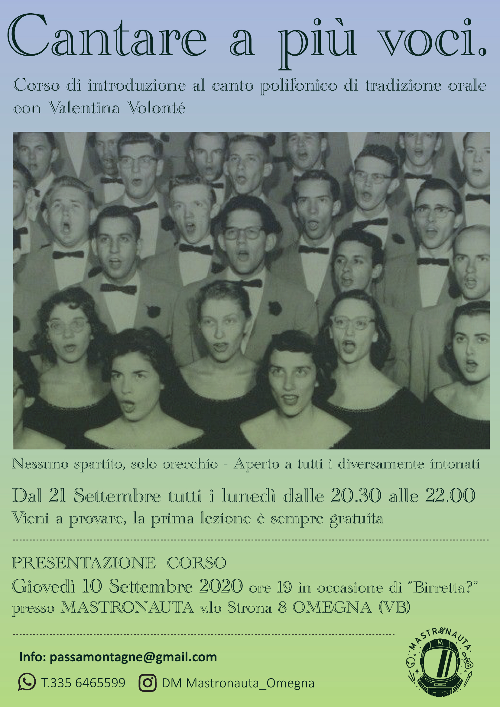 Lunedì dalle 20.30 alle 22.00 presso il Mastronauta di Omegna dal 21 settembre. Presentazione corso giovedì 10 settembre dalle 19.00.