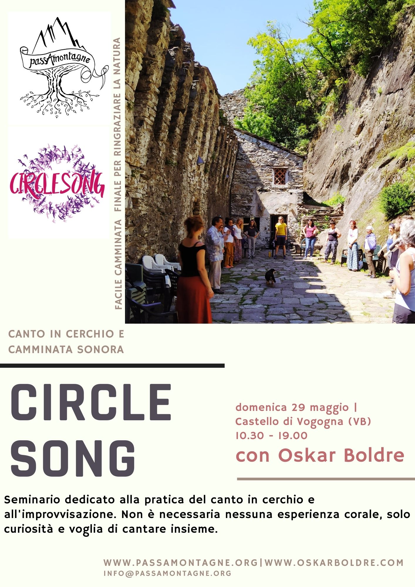 Circlesong: termine coniato da Bobby McFerrin che, a partire dalla seconda metà degli anni 80 ed insieme a Voicestra (12 cantanti condotti dallo stesso McFerrin), ha portato sui palchi di tutto il mondo un concerto di sole improvvisazioni vocali.  Le Circlesongs sono improvvisazioni vocali guidate in cui il coro, diviso a sezioni, esegue ripetendo le varie proposte insegnate dal conduttore. La voce è utilizzata come strumento, movimento e respiro aiutano l’assimilazione delle parti. Questa forma di improvvisazione corale è molto vicina a come vengono da sempre tramandati oralmente i canti.
