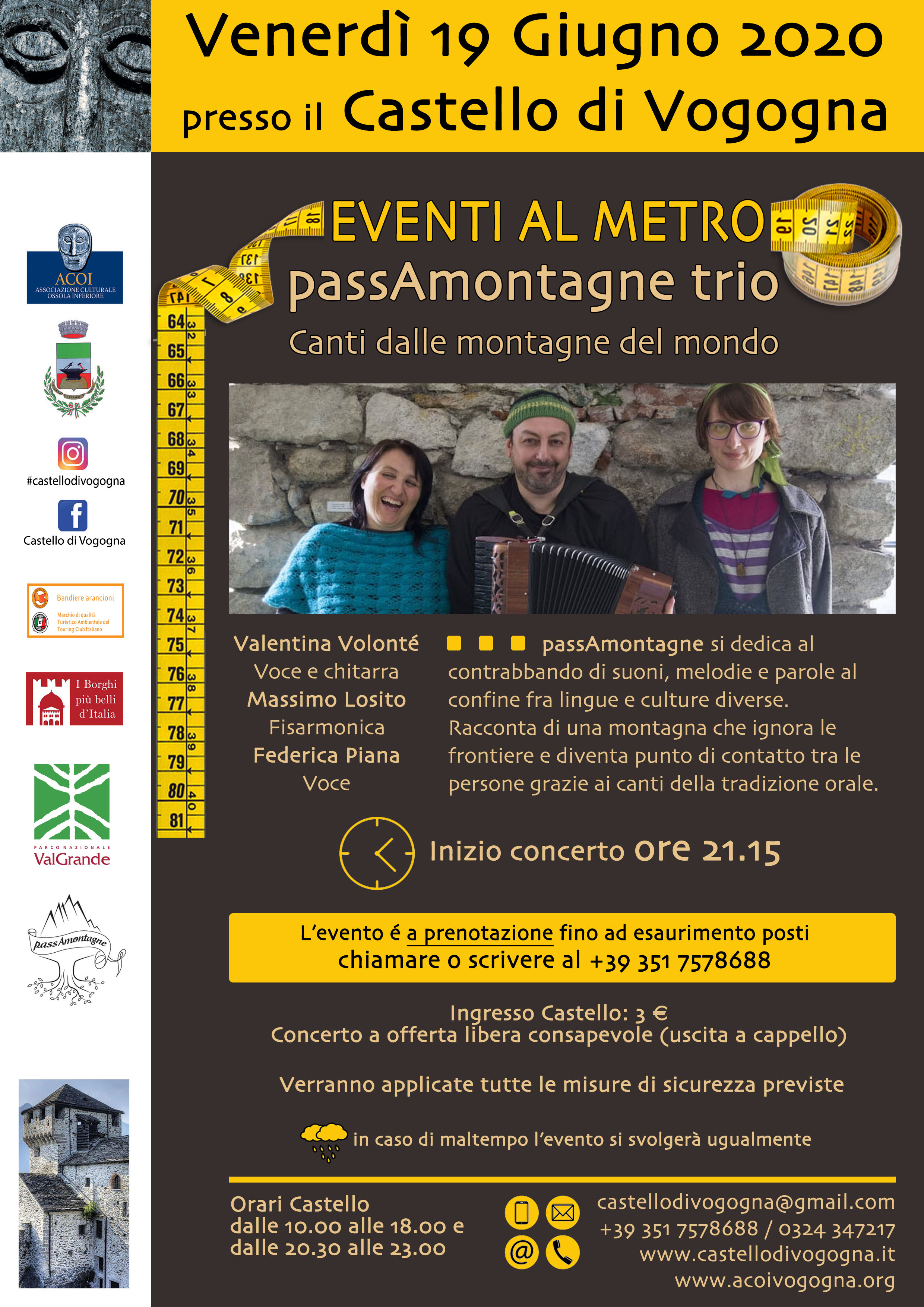 Eventi al metro è una rassegna culturale per i venerdì sera di apertura del Castello Visconteo di Vogogna (VB)