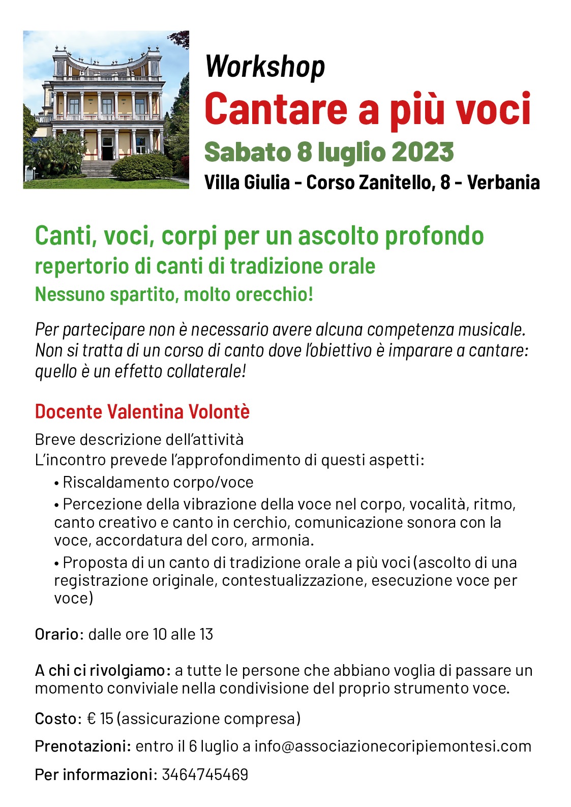 19-23 luglio | Stage non residenziale di canto | Vogogna (NO) ANNULLATO