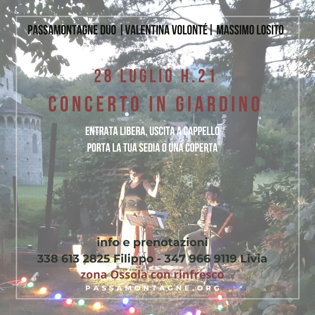 9 luglio | passAmontagne duo | Concerto in giardino! zona Ossola (vedi locandina)