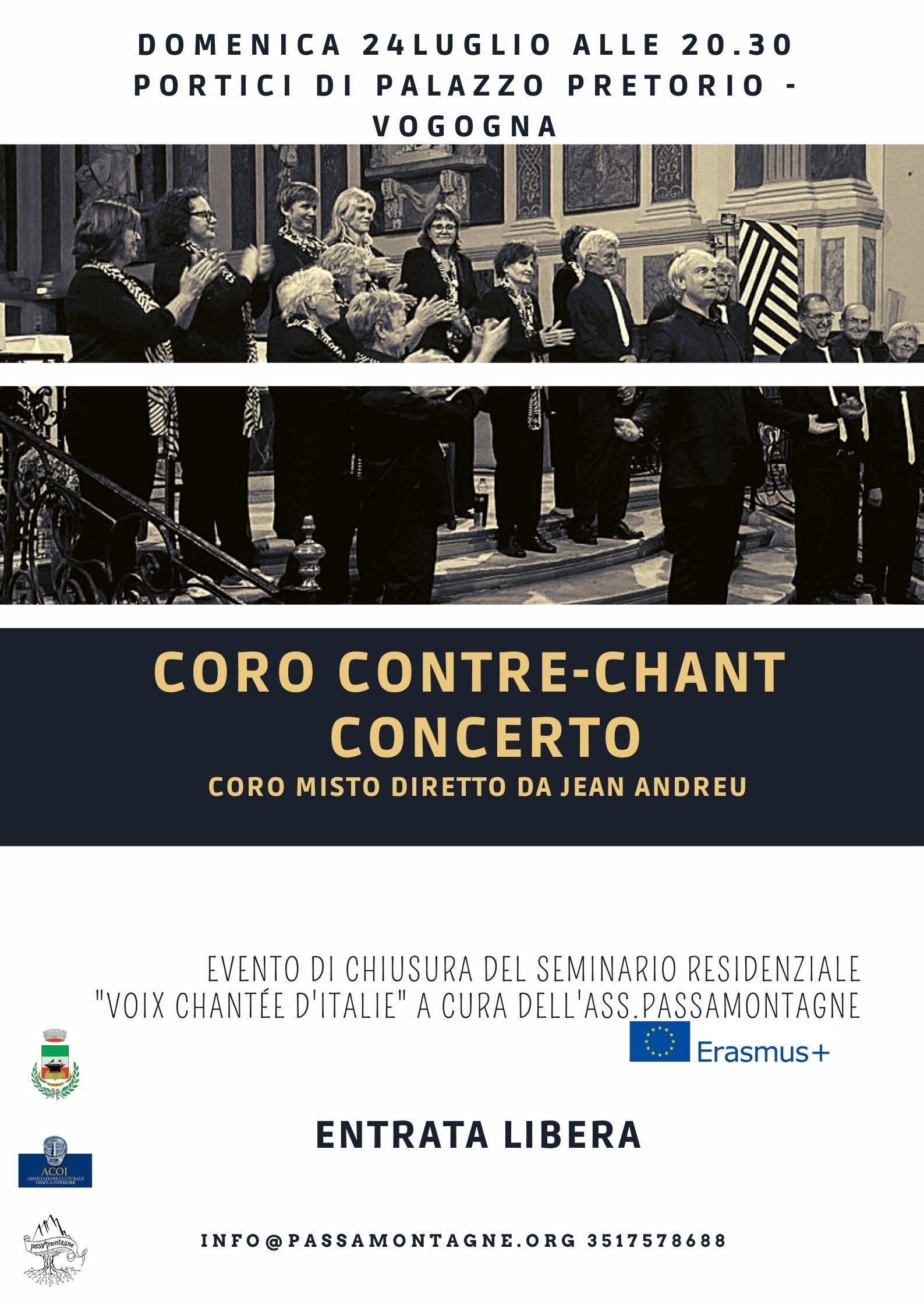 Stage conçu pour la chorale Contre-Chant de Muret. Une semaine dans le village de Vogogna, dans les Alpes, dans la région des lacs, en Piémont. Un village riche en histoire et en nature, hébergés dans le Bourg Médiéval, à l’ombre du Château des Visconti . Sept jours pour se retrouver et s'initier au répertoire de la tradition polyphonique orale italenne, en approfondissant tant l'aspect musical que le contexte historique et social. Sept jours pour découvrir la richesse de sa propre voix, la profondeur de l'écoute, l'importance des racines, la joie de chanter ensemble en accord avec notre rythme intime et le rythme du monde.